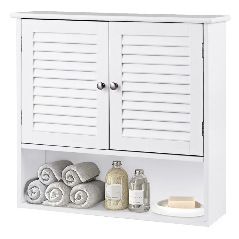 Double Doors Shelves Bathroom Wall Storage Cabinet Modern