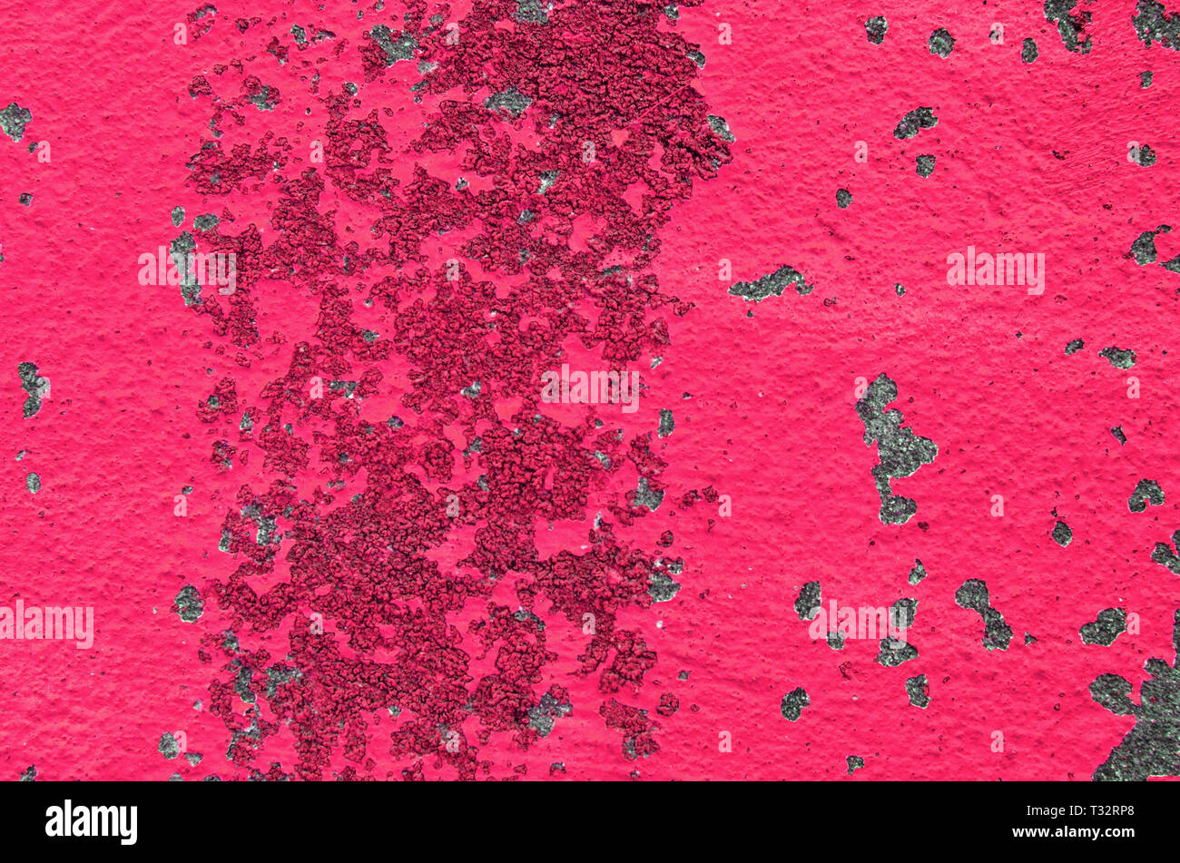 Texture Of Bright Red Or Pink Peeling Paint Background On Concrete